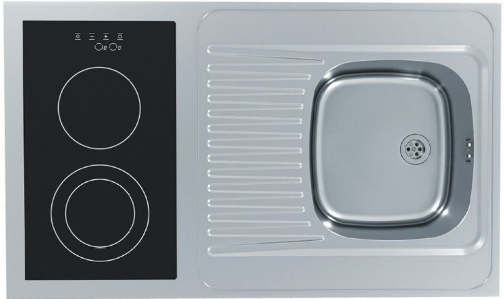 Nerezový kuchyňský dřez Alveus Combi Ceral 100 s vařičem pro montáž přímo na skříňku bez pracovní desky.