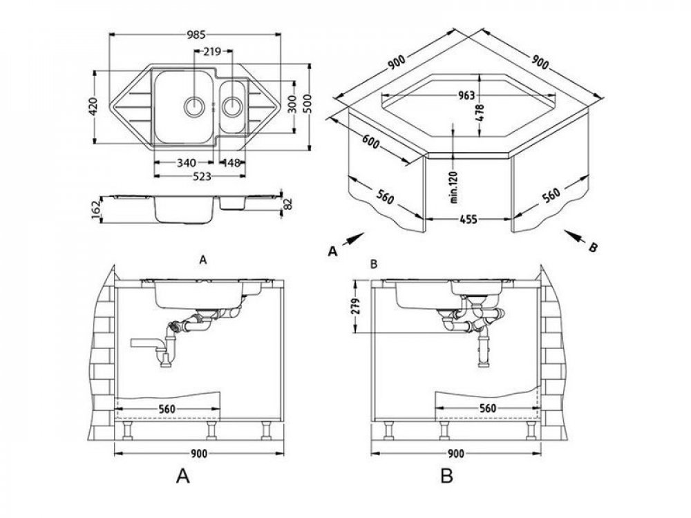 Rozměr skříňky: 600 mm, rohové 900 mm