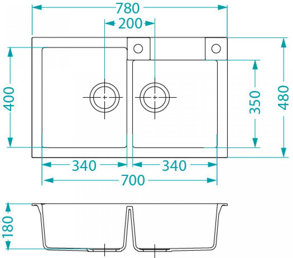 Rozměr dřezové nádoby 320 x 400x180 mm a 340x350x180 mm