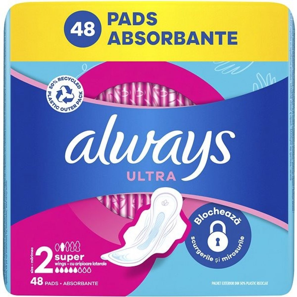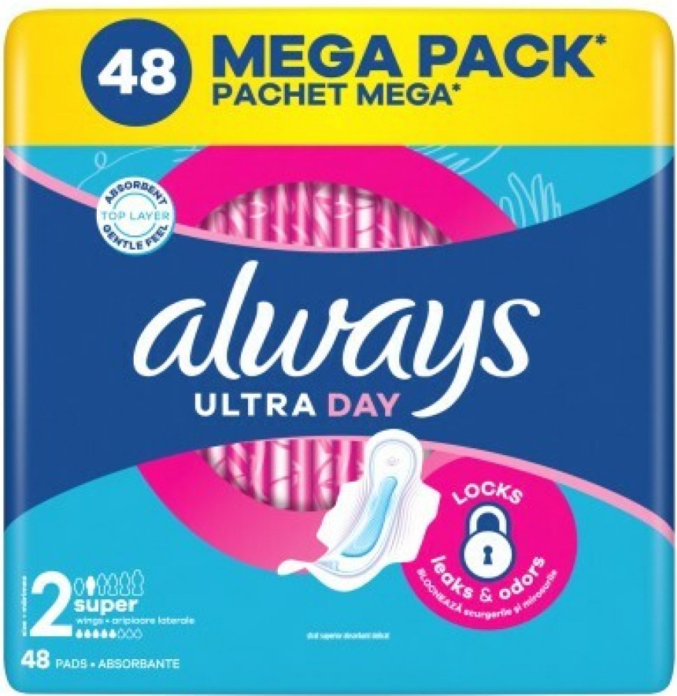 ALWAYS Ultra hygienické vložky s křidélky (velikost 2) 48 ks Always Ultra Den Hygienické Vložky Long (Velikost 2) 48 ks. Absorbují během několika sekund díky technologii InstantDry a zabraňují protečení a zápachu díky technologiím LeakGuard a OdorLock.