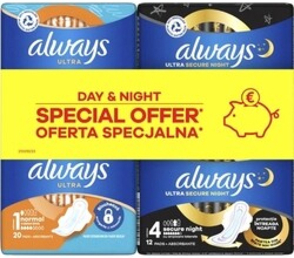 Always Ultra Night vložky 12 ks + Normal vložky 20 ks