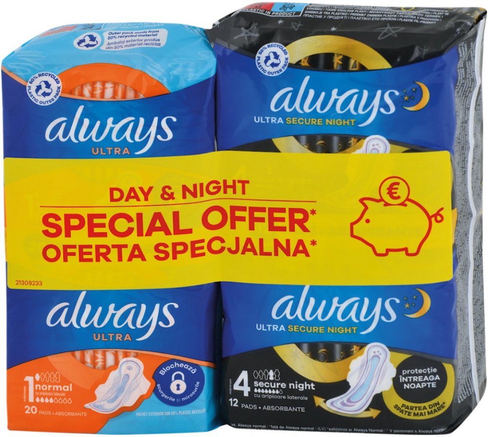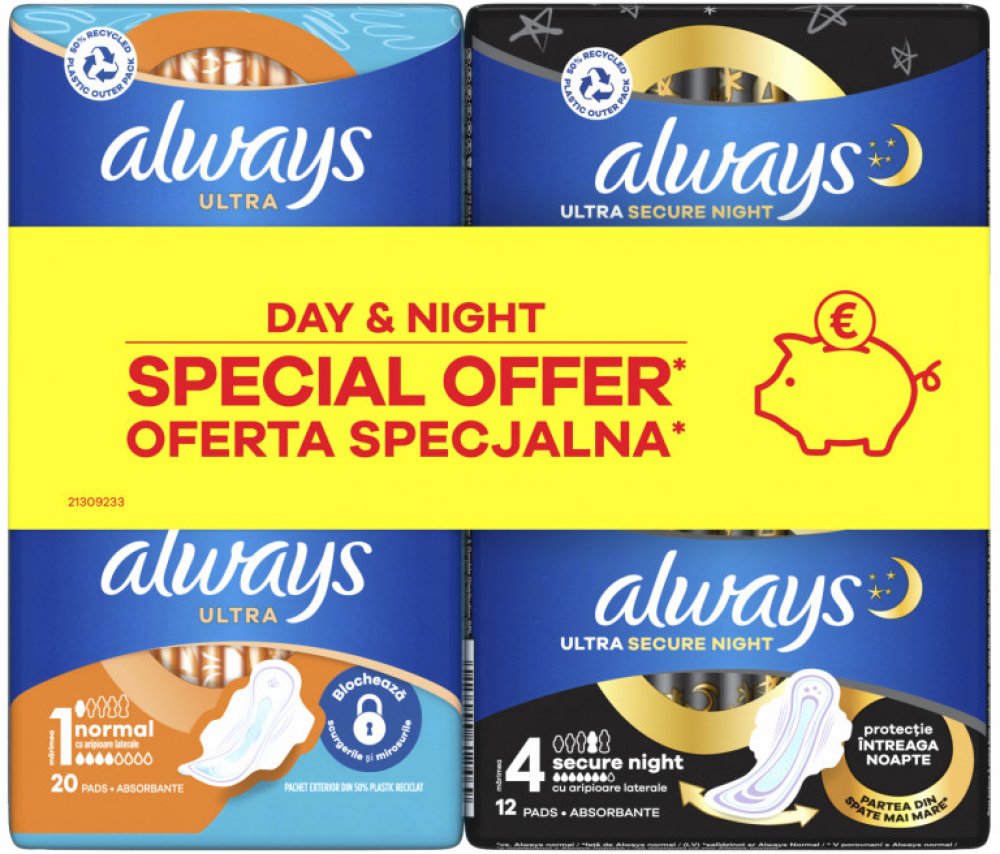 Always vložky duo Ultra Normal 20 ks + Ultra Secure Night 12 ks