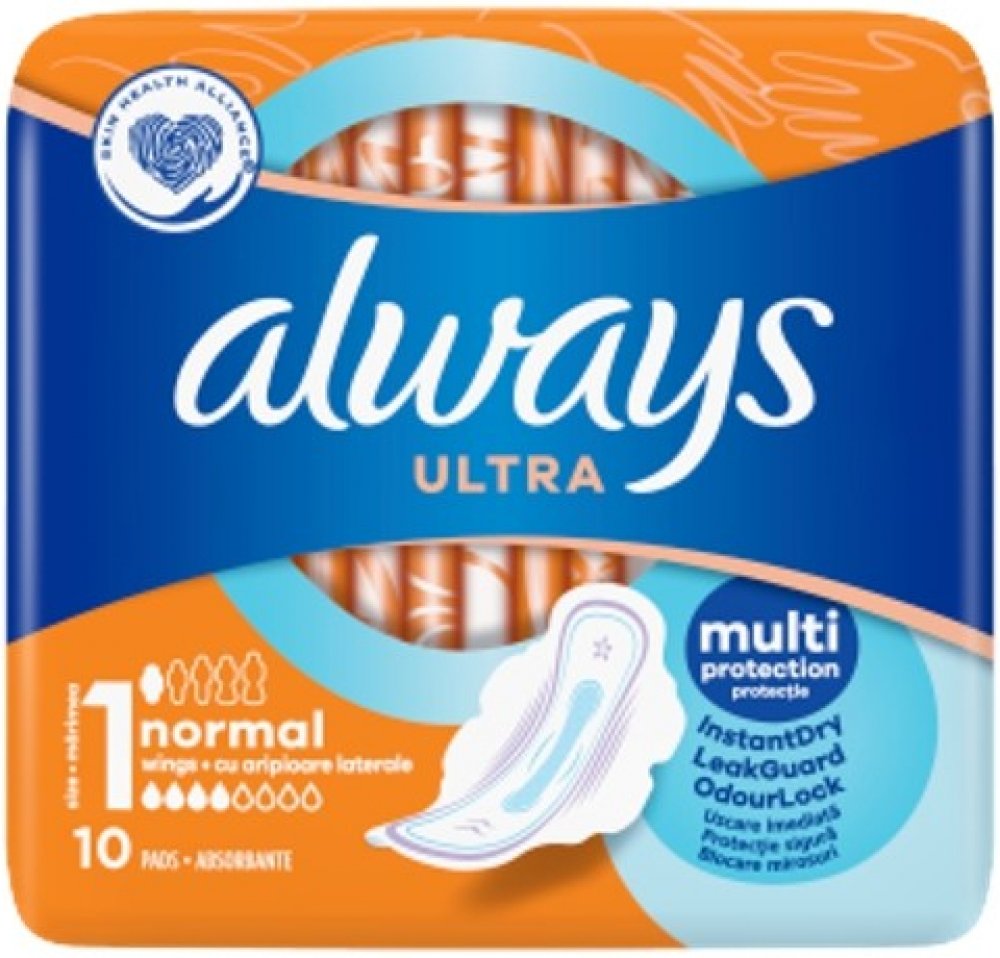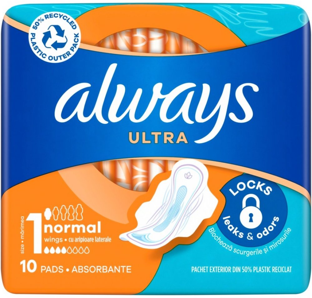 Popis : Always Ultra Normal jsou hygienické vložky s křidélky. Díky obsahu gelu tekutinu vtáhne dovnitř vložky, uzamkne ji a tím zabrání protečení. Vložky Always obsahují technologii neutralizující zápach, která má jemnou a příjemnou vůni.