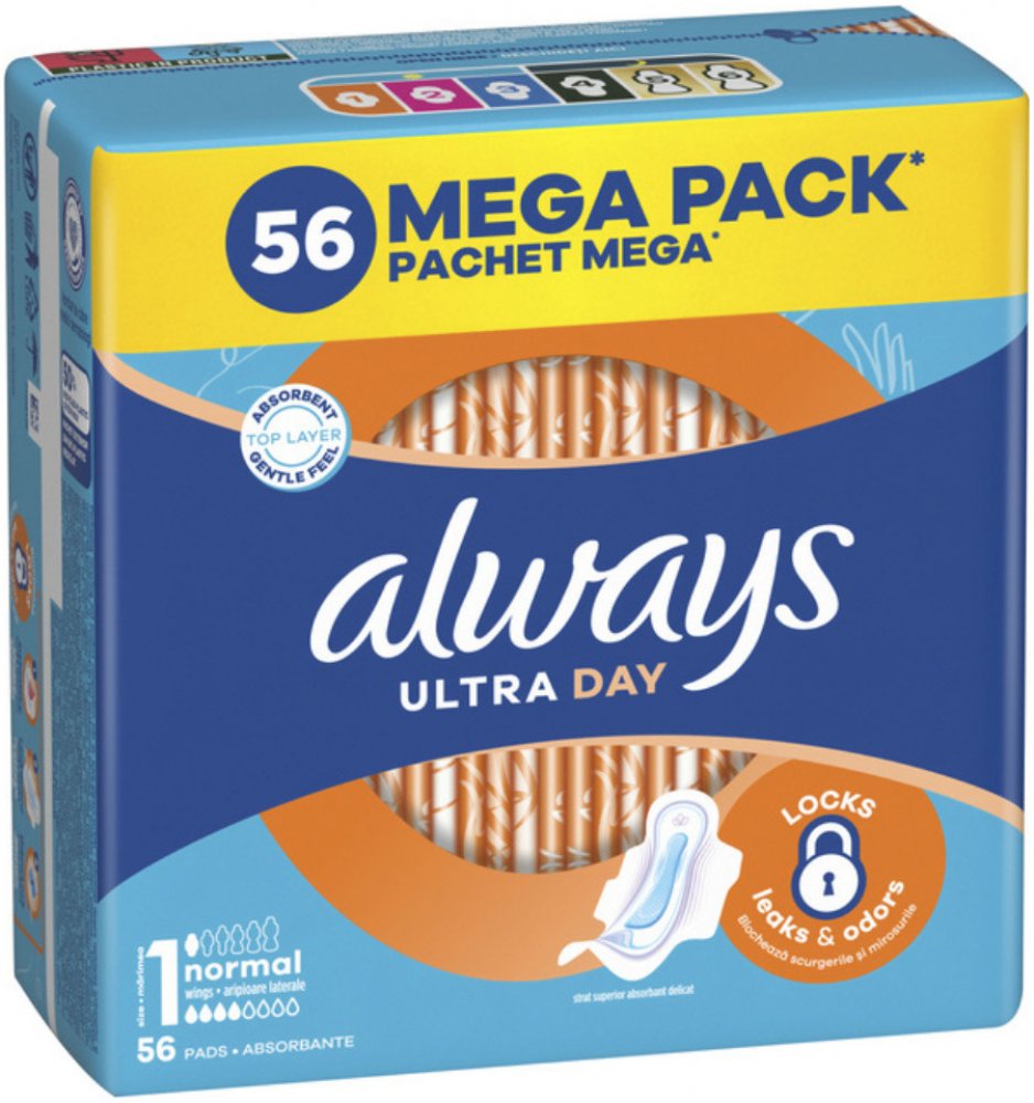 Anatomicky tvarované menstruační vložky ALWAYS kopírují tvary lidského těla, čímž vám nebudou překážet ani při sportování. Ochranu poskytují po celý den, a tak vás žádná situace nevyvede z míry. Fixace pomocí lepicí plochy umožňuje snadné připevnění k prádlu. Křidélka pomáhají udržet prádlo čisté a zabraňují bočnímu protečení. Protože jsou jednotlivě baleny, lze je použít na cestách. Efektivně se vypořádají s nežádoucími pachy a neutralizují je. V balení na vás bude čekat 56 vložek. Zásadní přednosti produktu ALWAYS Ultra Normal 56 ks Menstruační vložky ALWAYS poskytnou pocit bezpečí v průběhu celého dne Síla menstruace: středně silná Lepicí plocha pro spolehlivé uchycení Anatomické tvarování se ideálně přizpůsobí tělu Jsou jednotlivě balené Neutralizují zápach Křidélka brání protečení po stranách V balení dostanete 56 vložek