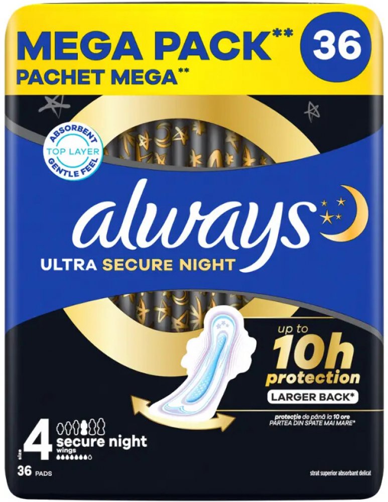 Anatomicky tvarované menstruační vložky ALWAYS mají schopnost napodobit tvar lidského těla, takže se nemusíte vyhýbat ani sportování. Ochranu zajistí během celé noci, a tak vám dopřejí spánek bez starostí. Pomocí lepicí vrstvy drží pevně na prádle, což zajišťuje dostatečnou stabilitu. Křidélka snižují riziko protečení a chrání prádlo před znečištěním. Prodloužený tvar zajišťuje lepší pokrytí a zvýšenou ochranu. Jelikož jsou baleny jednotlivě, jsou vhodné na cestování. V balení na vás bude čekat 36 vložek. Hlavní přednosti produktu ALWAYS Ultra Secure Night 36 ks Menstruační vložky ALWAYS poskytnou ochranu po celou noc Síla menstruace: středně silná Lepicí plocha pevně přichytí a udrží vložku na svém místě S prodlouženým tvarováním mají větší pokrytí a zaručí lepší ochranu Anatomické tvarování se přizpůsobí tělu Každý kus je jednotlivě zabalen Křidélka brání protečení po stranách Balení obsahuje 36 vložek