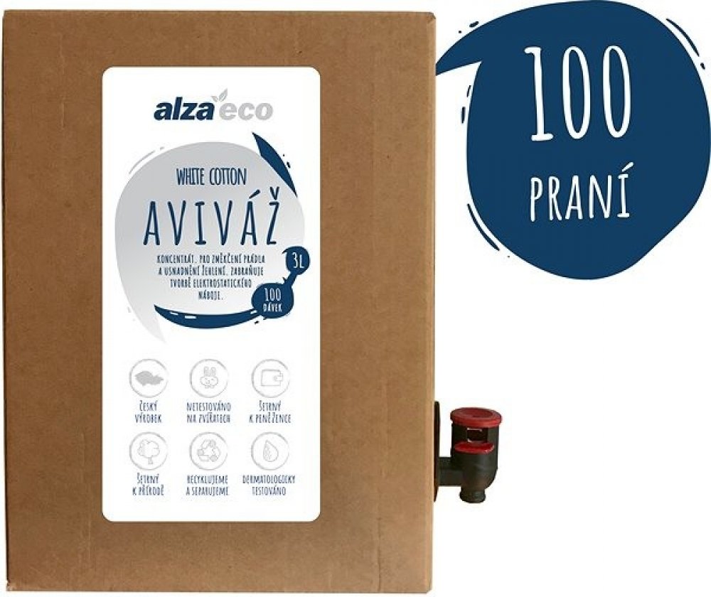 Výběr značkyAlzaPowerAlzaErgoAlzaGuardBlackmontEternicoFerridaLa ProromanceAlzaCaféZměkčí prádlo a usnadní žehleníEko aviváž AlzaEco White Cotton s nádhernou kombinací svěží květinové a mošusové vůně obsahuje aktivní látky, které se dostanou až do centra tkaniny a příjemně ji změkčí. Zároveň zabraňuje tvorbě elektrostatického náboje. Výsledkem tak bude hedvábně hebké a voňavé prádlo, které se bude žehlit mnohem lépe než kdy předtím. Aviváž AlzaEco White Cotton navíc perfektně funguje s našimi pracími prášky a gely AlzaEco. Jistě oceníte i velmi praktické balení – aviváž je dodávaná v moderním ekologicky šetrném a 100% recyklovatelném obalu.Český výrobekVýroba v Česku s sebou přináší udržitelnost, podporu i kvalitu.Šetrný k přírodě i peněžencePřírodní a kvalitní složení jde ruku v ruce s příznivou cenou.Netestováno na zvířatechOhleduplnost k přírodě i všem jejím součástem je samozřejmostí.Dermatologicky testovánoVýrobky AlzaEco ztělesňují kvalitu i šetrnost k planetě a pokožce.Jak správně dávkovat aviváž...