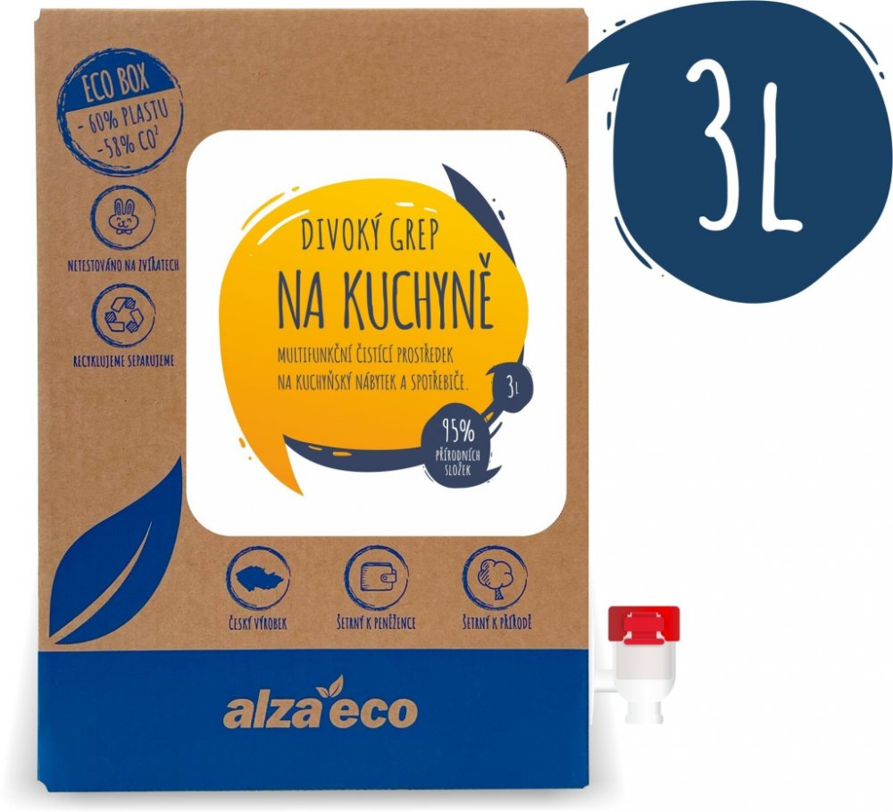 AlzaEco divoký grep je multifunkční čistící prostředek na kuchyňský nábytek a spotřebiče.český výrobeknetestováno na zvířatechšetrný k peněžencešetrný k příroděrecyklujeme a separujemedermatologicky testovánoProtože na přírodě záležíČisticí prostředek na kuchyně AlzaEco divoký grep je z 95 % přírodního původu. Čisticí prostředek má recepturu založenou na rostlinné bázi a minerálech. Všechny aktivní čistící složky jsou proto snadno biologicky rozložitelné. Díky tomu lze čisticí prostředek na kuchyně používat i se septiky a domácími čističkami.95 %přírodních složekPoradí si s úklidem všeho druhuMultifunkční čisticí prostředek AlzaEco divoký grep vám bude k ruce během úklidu ve vaší kuchyni. Pomůže vám s odstraněním odolných nečistot a zaschlých vrstev mastnoty. S AlzaEco divoký grep lze vyčistit nejen kuchyňské plochy, tvrdé povrchy, poličky a například i digestoře. širokévyužitíudržitelné balení čisticího prostředkuUdržitelné obaly Bag-in-Box jsou moderním řešením, jak vykročit ekologii vstříc. Tento...