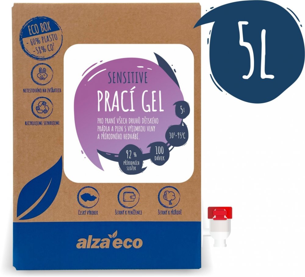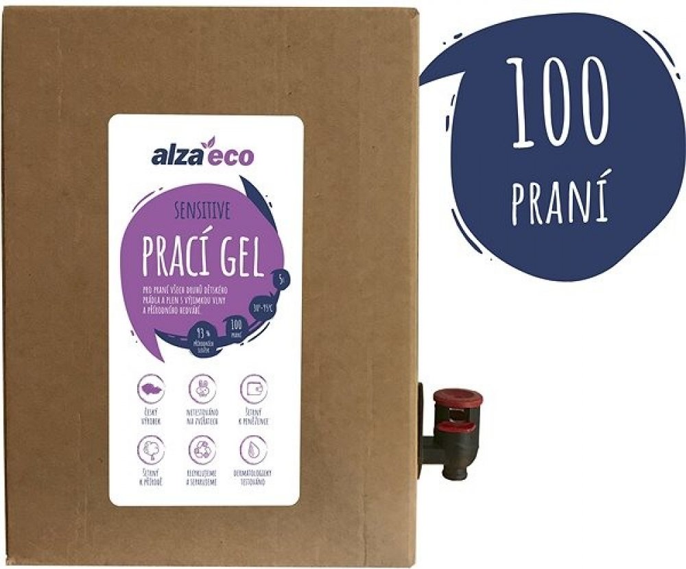 Pro praní všech druhů dětského prádla a plen s výjimkou vlny a přírodního hedvábí.český výrobeknetestováno na zvířatechšetrný k peněžencešetrný k příroděrecyklujeme a separujemedermatologicky testovánoProtože na přírodě záležíPrací gel AlzaEco Sensitive je z 93 % přírodního původu. Všechny aktivní prací složky jsou rostlinného původu a tedy snadno biologicky rozložitelné. Proto je prací gel AlzaEco Sensitive vhodný pro použití se septiky a domácími čističkami.93 %přírodních složekOdstraní i ty nejodolnější skvrnyPrací gel AlzaEco Sensitive proniká hluboko do vláken a díky přítomným enzymům napomáhá odstranit i ty nejodolnější skvrny bílkovinného, tukového a škrobového charakteru. Skvěle tak odstraní stopy od trávy, krve, omáček, kakaa a kojenecké výživy. AlzaEco Sensitive je určen k praní všech druhů dětského prádla a obsahuje aktivní složky, které jej rozjasní.100pranífunkční a účinnýAbyste ekologii učinili zadost, doporučujeme prát na 30 °C. Prací gel AlzaEco je vysoce účinný již při...