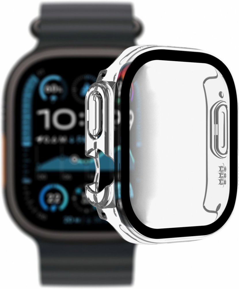 pro Apple Watch 49mm, na boční strany a displej, materiál polykarbonát v kombinaci s tvrzeným sklem o tvrdosti 9H, oleofobní vrstva, nevhodný pro kontakt s vodou (sprchování, plavání), výřezy pro konektory a tlačítka, kompatibilní s bezdrátovým dobíjením, bez omezení citlivosti na dotyk (AGD-WCP7Z)