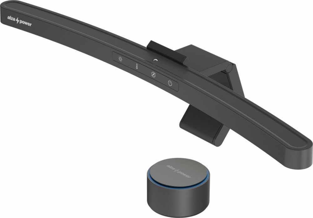 LED, pro prohnuté monitory (1000-1800R) s úhlopříčkou 24-34", nastavitelný jas a barevná teplota 3 000-6 500 K (teplá, denní a studená), časovač, příkon 5 W, světelný tok 275 lm, vyzařovací úhel 45°, CRI > 95, životnost 25 000 hodin, elegantní a kompaktní design, rovnoměrné osvětlení, ovládání pomocí dotykových tlačítek na světle nebo otočného dálkového ovladače (2,4 GHz), 2× AAA baterie do ovlada...