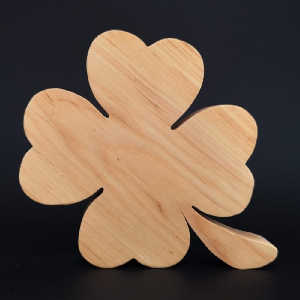 Dřevěná dekorace ve tvaru čtyřlístku je vyrobená z masivního dřeva olše, rozměr je 20 × 18 cm, dřevo je na povrchu ošetřeno přírodním olejem.