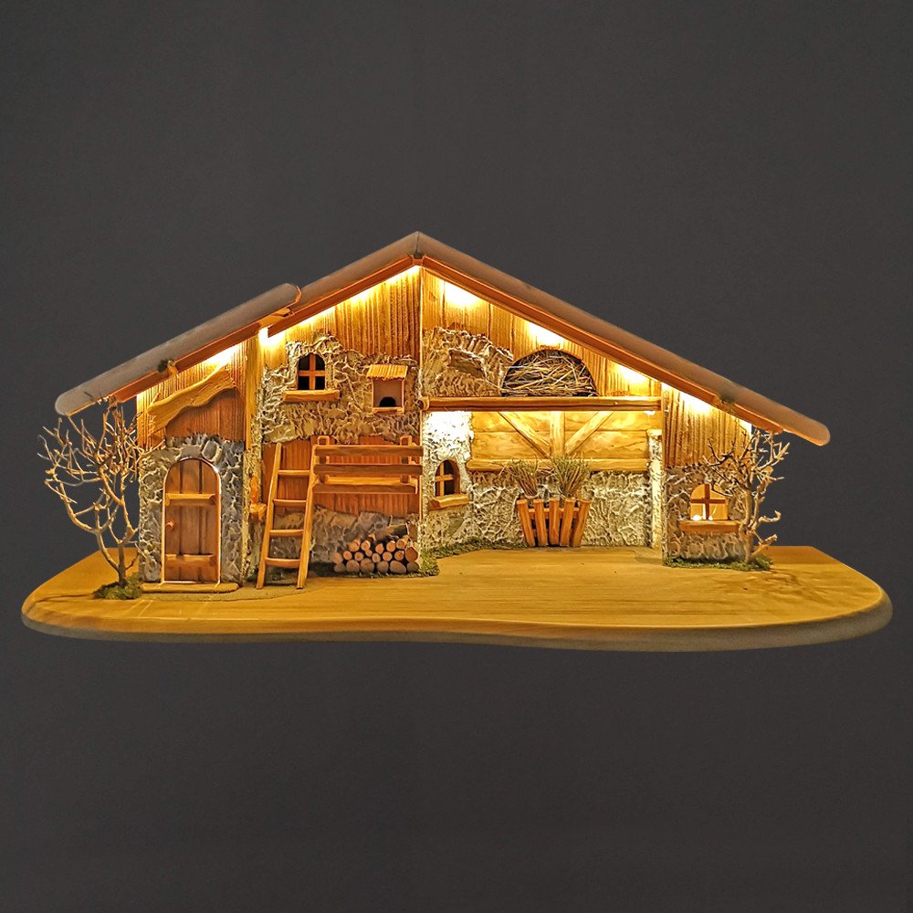 Tradiční ručně vyrobený betlém z masivního smrkového dřeva, ke kterému si každé Vánoce naaranžujete postavičky, což je i oblíbená činnost dětí. Betlém nebo také jesličky jsou uměleckým vyobrazením znázorňujícím Svatou rodinu. Rozměr betlému je délka 80 x šířka 36 x výška 36 cm, betlém je vyrobený z masivního smrkového dřeva, je na podstavci a má ručně dodělávané detaily, z výhradně přírodního materiálu, jako je mech, seno. Na stěnách je použitá omítka a keře jsou z větviček. Betlém je osvětlen pomocí světelného led řetězu zakončeného konektorem USB-A, adaptér do sítě není součástí. Lze použít běžný typ nabíječky na mobilní telefon, případně powerbanku. K betlému doporučujeme přiobjednat ručně malované figurky o velikosti 11 cm - kód 34218. Český výrobek
