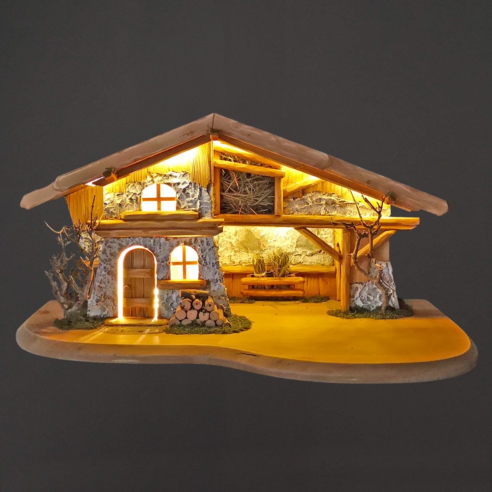 Tradiční ručně vyrobený betlém z masivního smrkového dřeva, ke kterému si každé Vánoce naaranžujete postavičky, což je i oblíbená činnost dětí. Betlém nebo také jesličky jsou uměleckým vyobrazením znázorňujícím Svatou rodinu. Rozměr betlému je délka 54,5 x výška 27 x šířka 29 cm, betlém je vyrobený z masivního smrkového dřeva, je na podstavci a má ručně dodělávané detaily, z výhradně přírodního materiálu, jako je mech, seno, břidlice. Na stěnách je použitá omítka a keře jsou z větviček. Betlém je osvětlen pomocí světelného led řetězu zakončeného konektorem USB-A, adaptér do sítě není součástí. Lze použít běžný typ nabíječky na mobilní telefon, případně powerbanku. K betlému doporučujeme přiobjednat ručně malované figurky o velikosti 11 cm - kód 34218. Český výrobek