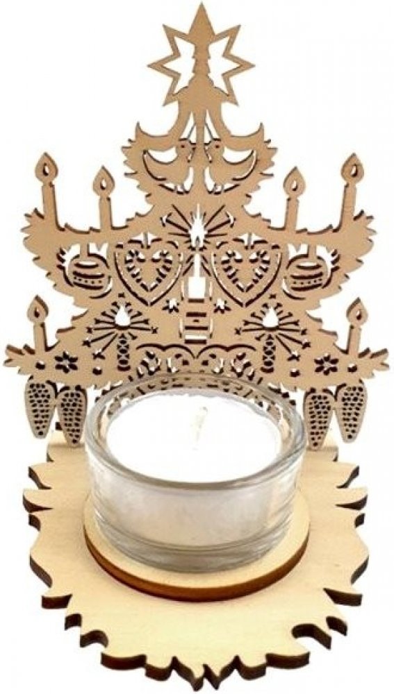Výzdoba ze dřeva je rok od roku populárnější díky svému přírodnímu původu a atraktivnímu vzhledu. Krásný dřevěný svícen ve tvaru ozdobeného vánočního stromečku je vyroben z topolové překližky. Svícen se skládá ze stromečku a podstavce s otvorem pro čajovou svíčku. Jedná se o kvalitní výrobek české rodinné firmy AMADEA s mnohaletou tradicí, která se specializuje na výrobu ze dřeva. Dřevěný svícen V...