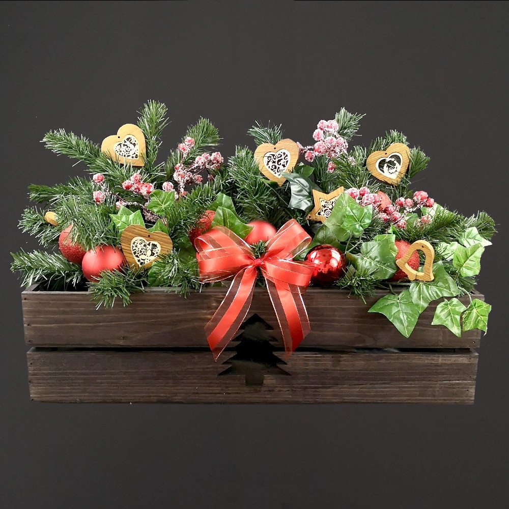 Dřevěný truhlík je vyrobený z masivního smrkového dřeva a namořený na hnědou barvu. Ve středu truhlíku je vyříznutý vánoční motiv stromečku. Truhlík je ozdobou nejen do interiéru, ale využití nalezne i v zastřešeném exteriéru. Díky vánočnímu motivu vytvoříte příjemnou vánoční atmosféru ve vašem domově. Vnější rozměr 62x21,5x17cm. Vnitřní rozměr 60x19,5x16cm. Truhlík je uvnitř opatřen černou fólií o tloušťce 150 mikronů. Fólie je z hygienicky nezávadného koextrudovaného polyethylenu. Jedná se o 3-vrstvou vyfukovanou fólii LDPE, která je velmi pevná a nahrazuje tak běžně vkládáný plastový truhlík. Český výrobek