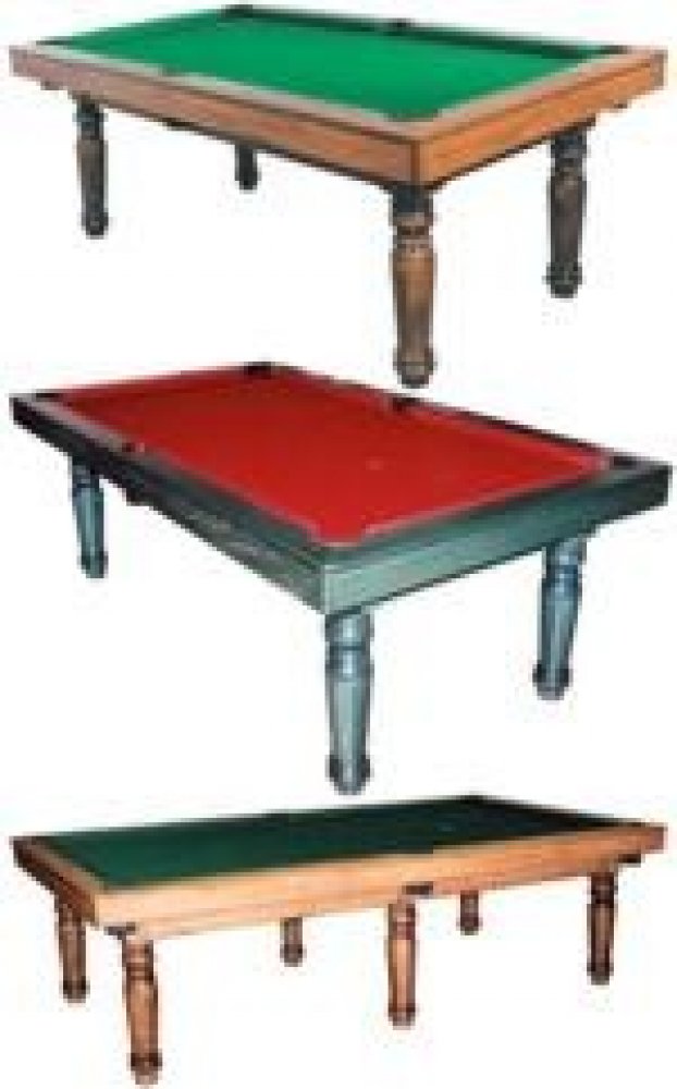 - kulečník Pool AMATER 6ft - vysoká stabilita a oku lahodící tvar - hrací plocha: 180 x 90 cm - celkové rozměry: 210 x 120 x 80 cm - materiál: mantinely, boky a korpus - lamino - soustružené masivní nohy, na přání hranaté nebo válcové - jednodílná dřevotřísková deska o síle 19 mm - barva sukna a barva stolu dle přání zákazníka - v ceně kulečníku ZDARMA: koule pool TW, 2x tágo RAMIN 144cm, 6x křída...