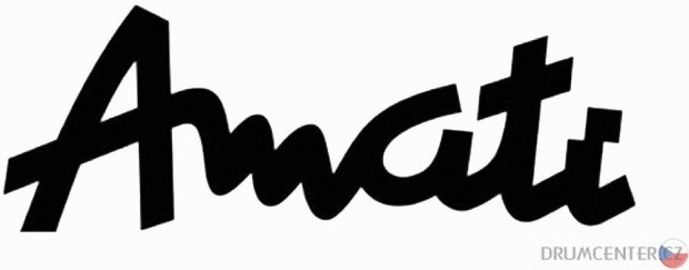 Samolepící černé logo Amati určené k nalepení na přední blánu basového bubnu, rozměr 160x62mm.
