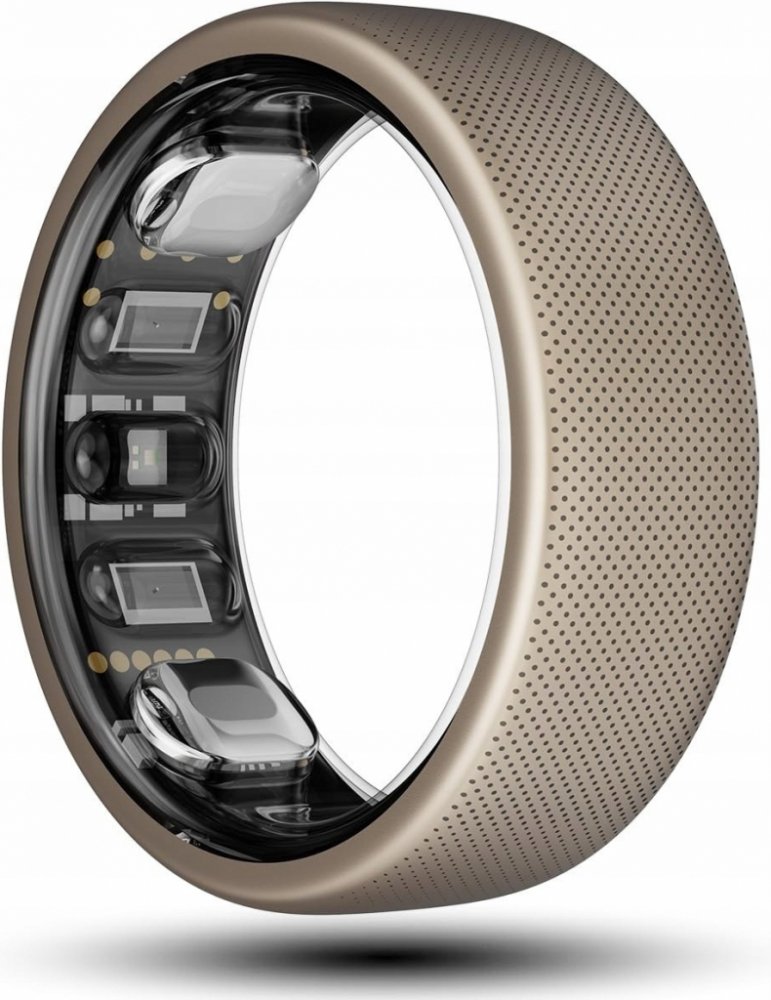 Prsten má PPG pro tep, měření SpO₂, EDA pro sledování stresu a teplotní senzor, spolu se 3osým akcelerometrem a gyroskopem. Díky kontaktu prstu jsou měření stabilnější než u zápěstních nositelných zařízení.