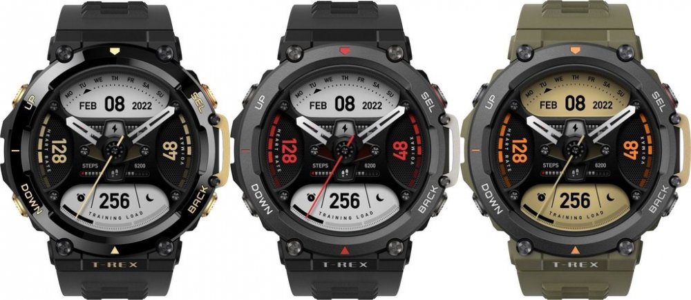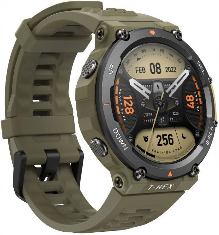 Amazfit T-Rex 2 mají odolný a pevný tvar s výraznými úhly. Prošly 15 vojenskými testy, takže s vámi zdolají horké pouště, vlhké deštné pralesy i polární ledovce. Buďte svědky vytrvalosti, která s lehkostí vzdoruje živlům.