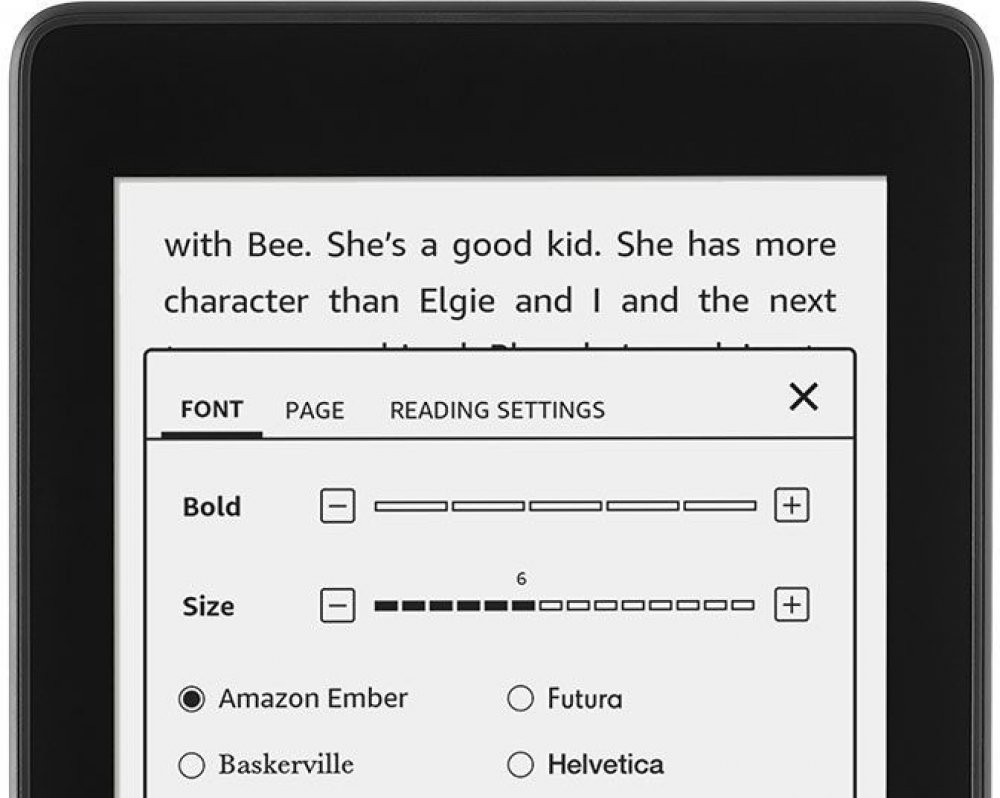 Kindle má osm nastavitelných velikostí písma, aby čtení vyhovovalo vašim preferencím. Velikost textu své oblíbené knihy můžete zvětšovat a změnšovat jednoduchým stiskem tlačítka. Pokud jsou vaše oči unaveny, jednoduše zvětšíte velikost písma a pokračujete pohodlně ve čtení. Nyní je každá kniha v knihovně tištěna dostatečně velkým písmem. Na výběr jsou také 3 různé styly písma.