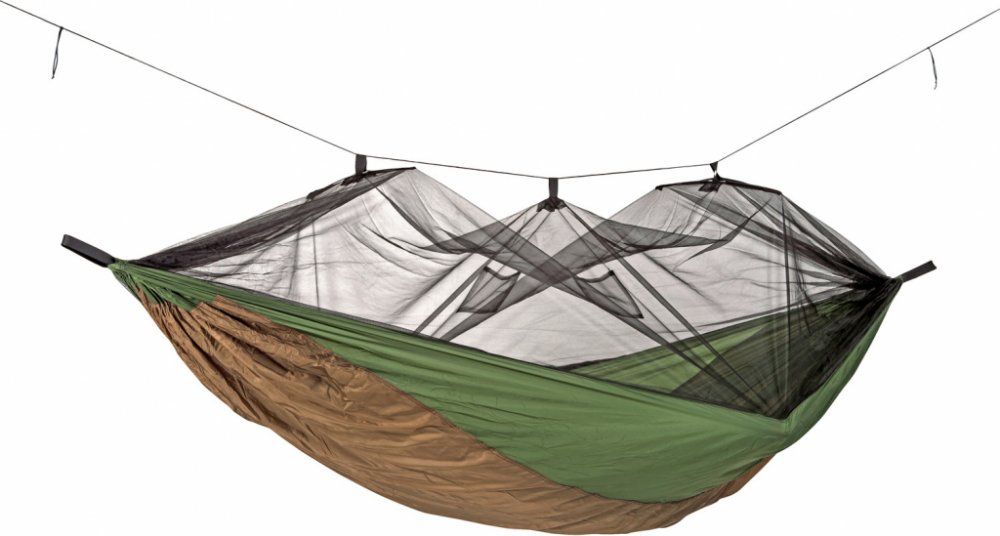 Ultra lehká hamaka s moskytiérou a kapsou pro karimatku.