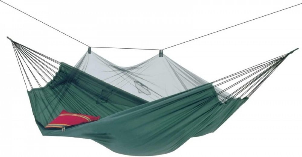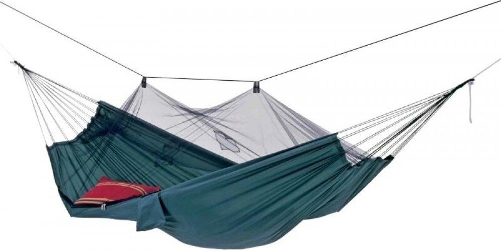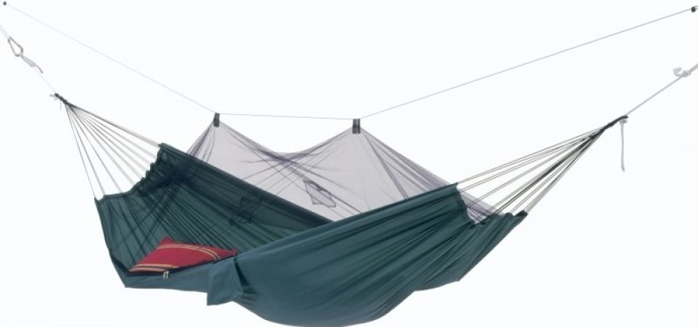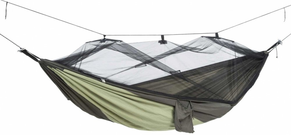 Jak již z názvu vypovídá, ochrání vás hamaka s moskytiérou proti komárům. To však není jediný druh hmyzu, od kterého budete mít při spánku v této hamace pokoj. Moskytiéra totiž zastaví také další létající hmyz, jako jsou mouchy či muchničky, a dále i lezoucí hmyz, třeba klíšťata, mravence či šváby. Vstup do hamaky je zboku na dvojitý zip.