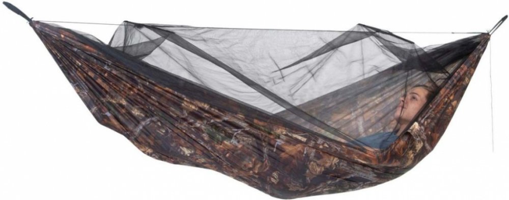 Hamaku lze přirozeně využít i bez moskytiéry. To když se v ní rozhodnete spát mimo hmyzí sezónu, případně přespáváte v místech, kde se příliš mnoho dotěrného hmyzu nevyskytuje. Hamaku můžete využít v různých ročních obdobích díky lesnímu maskovacímu vzoru, který splývá s okolím.