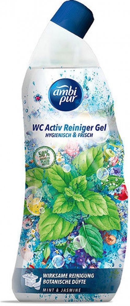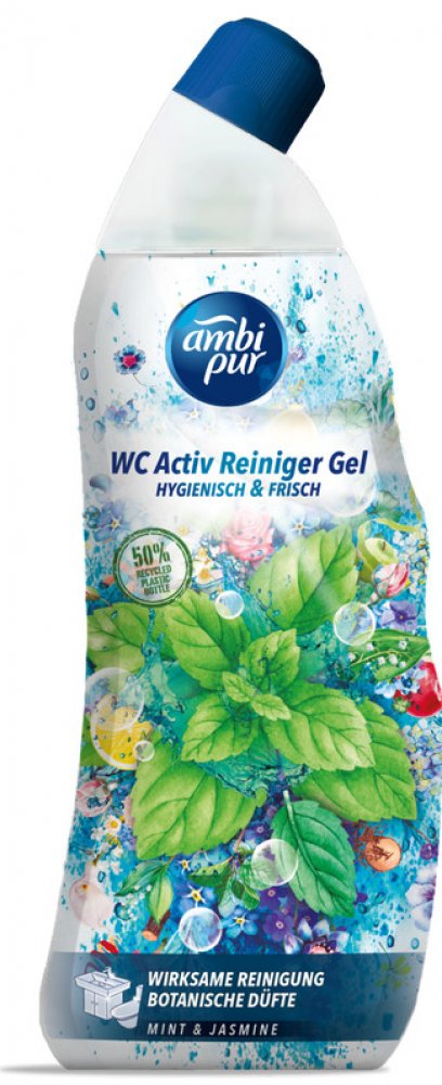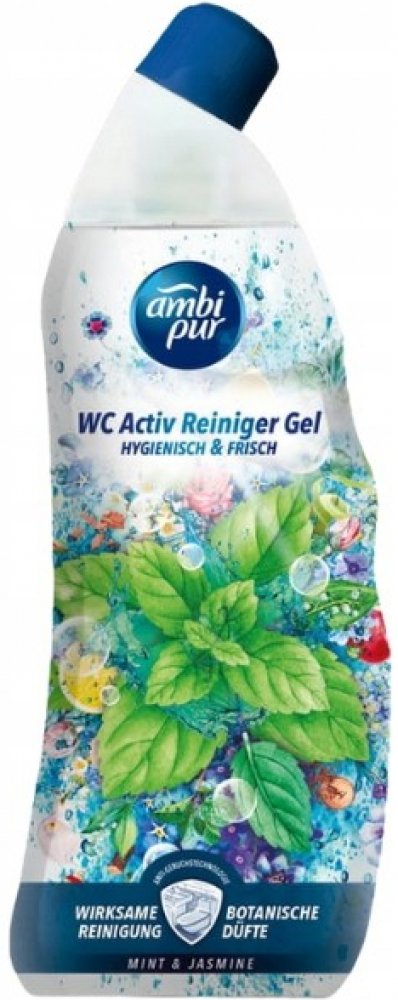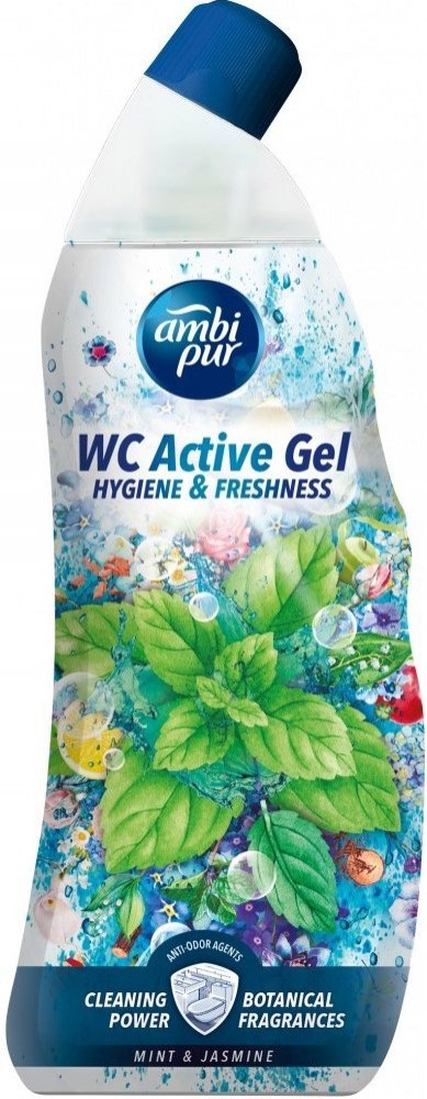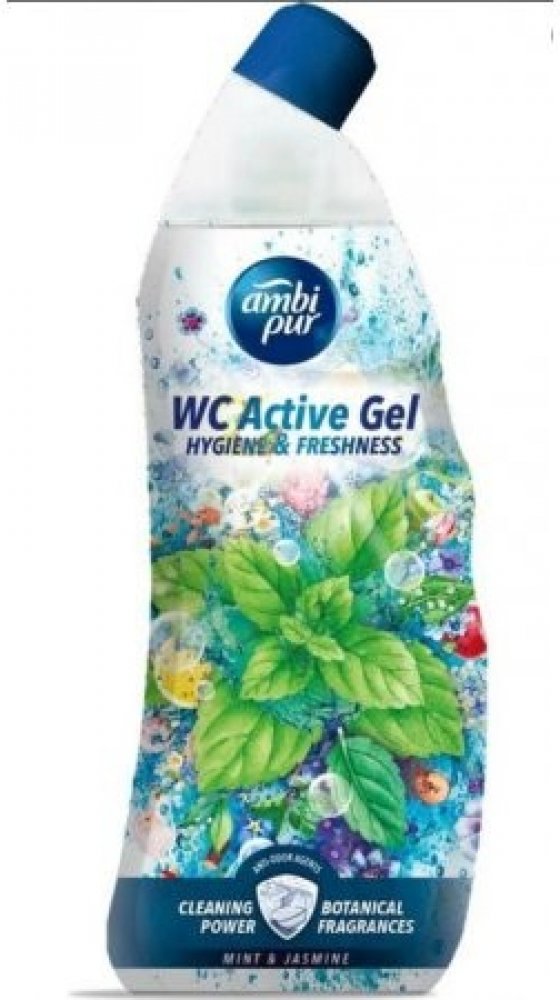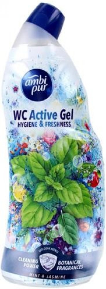Ambi Pur WC Active Gel 750 ml Mint & Jasmine zajistí hygienickou čistotu vaší toalety díky svému silnému složení proti vodnímu kameni. Je obohacený o vonné oleje, které provoní toaletu po každém spláchnutí. Pro dokonalou čistotu a lesk vaší toalety. S vůní máty a jasmínu.POUŽITÍ:Nalijte gel pod okraj vaší toalety a nechte působit alespoň 5 minut. Poté spláchněte, popřípadě použijte záchodovou štětku k dočištění.SLOŽENÍ:viz Ingredients na zadní straně obalu.UPOZORNĚNÍ:Způsobuje vážné podráždění očí. Dráždí kůži. Uchovávejte mimo dosah dětí. Je-li nutná lékařská pomoc, mějte po ruce obal nebo štítek výrobku. PŘI ZASAŽENÍ OČÍ: Několik minut opatrně vyplachujte vodou. Vyjměte kontaktní čočky, jsou-li nasazeny a pokud je lze vyjmout snadno. Pokračujte ve vyplachování. PŘI STYKU S KŮŽÍ: Omyjte velkým množstvím vody. Nemíchejte s bělicími či jinými čisticími prostředky. PŘI VDECHNUTÍ: Přeneste postiženého na čerstvý vzduch a ponechte jej v klidu v poloze usnadňující dýchání. Necítíte-li se dobře, volejte TOXIKOLOGICKÉ INFORMAČNÍ STŘEDISKO nebo lékaře. První pomoc při kontaktu s kůží : PŘI STYKU S KŮŽÍ: Omyjte velkým množstvím Voda. Kontaminovaný oděv svlékněte a před opětovným použitím ho vyperte. Při podráždění kůže: Vyhledejte lékařskou pomoc/ošetření. Přestaňte produkt používat. První pomoc při kontaktu s okem : PŘI ZASAŽENÍ OČÍ: Několik minut opatrně vyplachujte vodou. Vyjměte kontaktní čočky, jsou-li nasazeny a pokud je lze vyjmout snadno. Pokračujte ve vyplachování. Okamžitě volejte TOXIKOLOGICKÉ INFORMAČNÍ STŘEDISKO nebo lékaře. První pomoc při požití : PŘI POŽITÍ: Vypláchněte ústa. NEVYVOLÁVEJTE zvracení. Okamžitě volejte TOXIKOLOGICKÉ INFORMAČNÍ STŘEDISKO nebo lékaře.ŽIVOTNÍ PROSTŘEDÍ:Zcela prázdný a čistý obal je možné recyklovat. Chraňte životní prostředí recyklací. Má to smysl