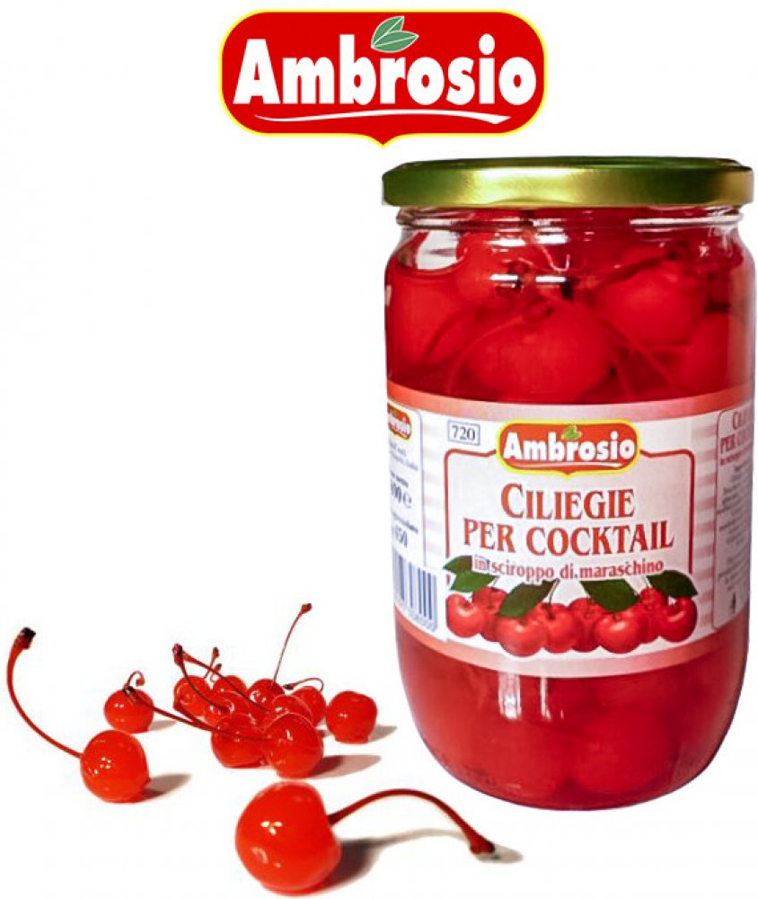 Ambrosio koktejlové třešně v marasku se stopkou 750 g