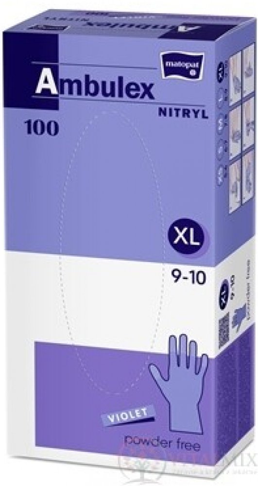 Nitrilové lékařské rukavice - nesterilní, nepudrované, fialové. Mají vysokou pevnost a odolnost. Mohou být využity v lékařském prostředí k vyšetřovacím a diagnostickým úkonům. Rukavice jsou ve velikosti XL.