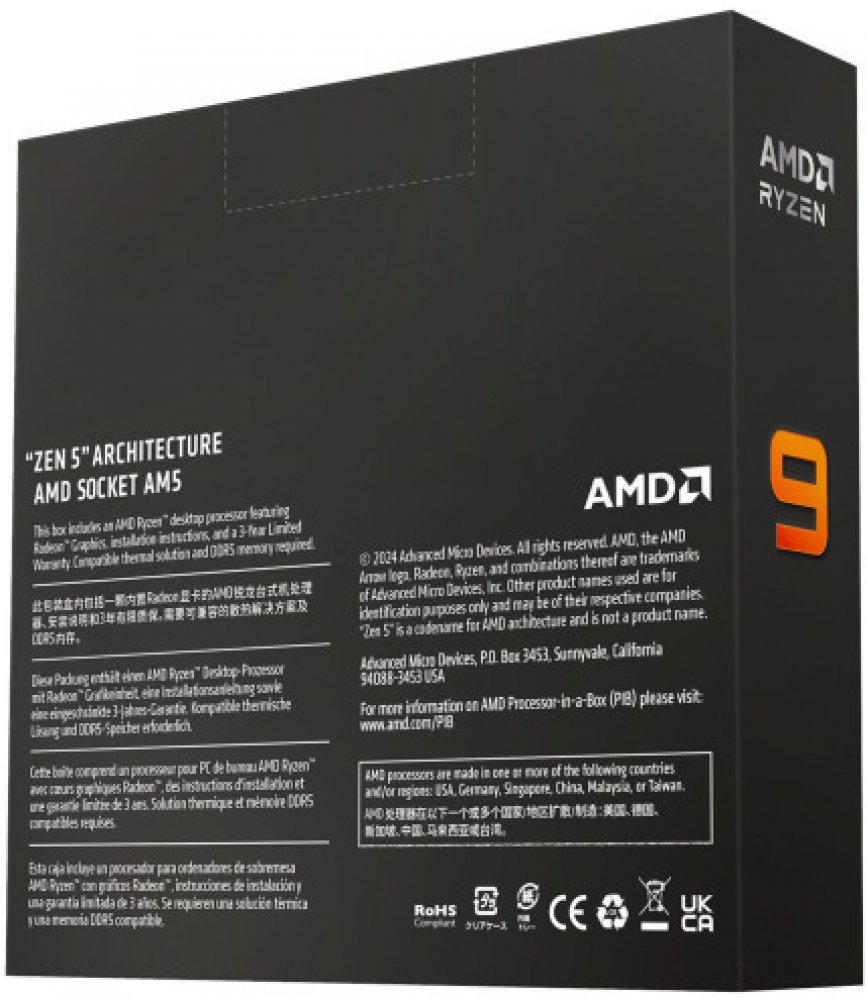 AMD Ryzen 9 socket AM5 AMD stolní počítač AMD Ryzen 9000 170 W 4 nm 1.28 MB 16 MB 64 MB 4.3 GHz 5.7 GHz 16 jader 32 AMD Radeon Graphics DDR5 2 kanálů PCIe 5.0