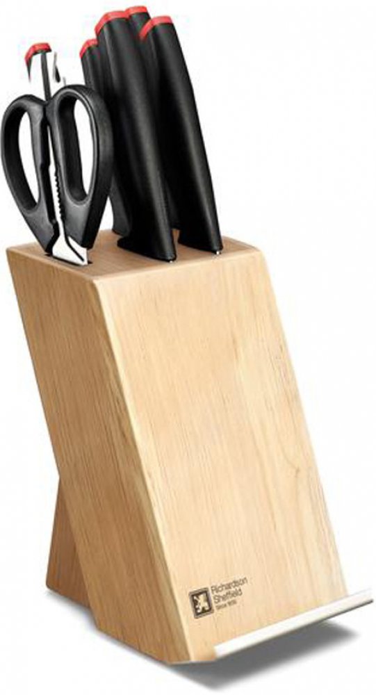 S touto 6-ti dílnou sadou kuchyňských nožů v masivním dřevěném bloku od Richardson Sheffield LASER máte vše po ruce a na pracovní desce o něco více místa. Praktický dřevěný blok vám ušetří prostor. Tyto kuchyňské nože s oboustranně broušenými čepelemi pro maximální pohodlí vyhoví nárokům rušné moderní kuchyně, a to i při každodenním pravidelném používání. Sada obsahuje 5 nožů a nůžky.