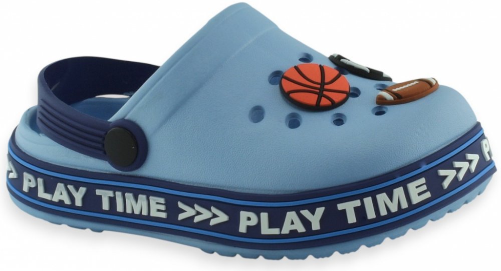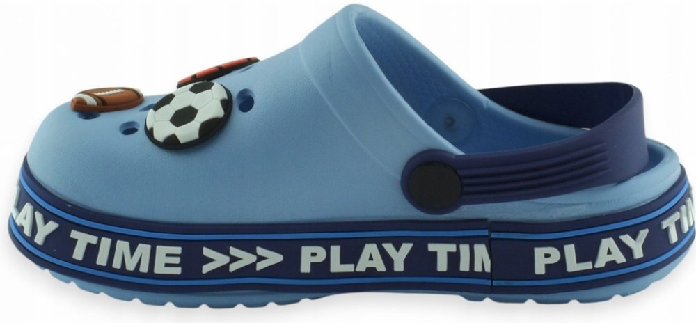 Pantofle na léto – ideální na pláž, do zahrady i na každodenní nošení. Sportovní míče na přední straně se jistě budou líbit mladým fanouškům fotbalu. Regulovatelný pásek na patě snadno přemění pantofle na sandálky a zajistí tak pohodlí a styl v jednom.