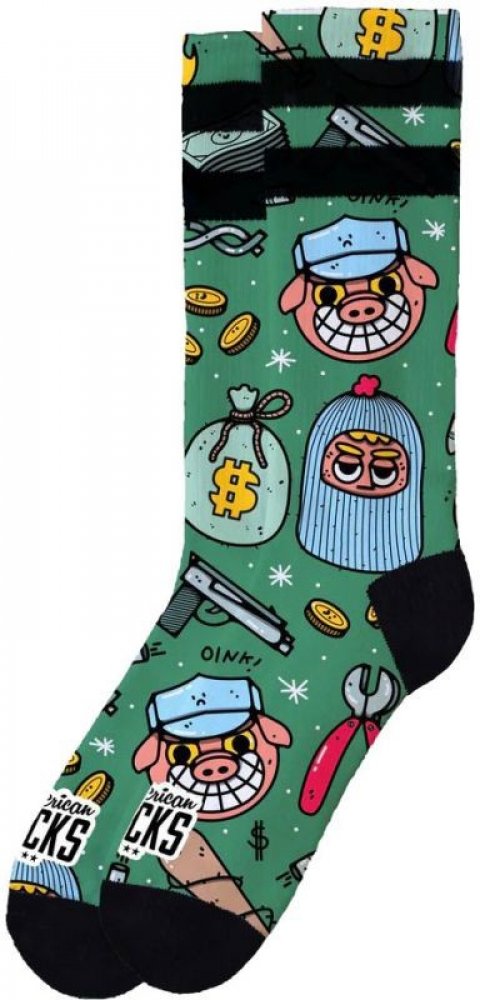 Model heist havoc od značky American Socks. Kolekce 2025. Barva zelená + červená.