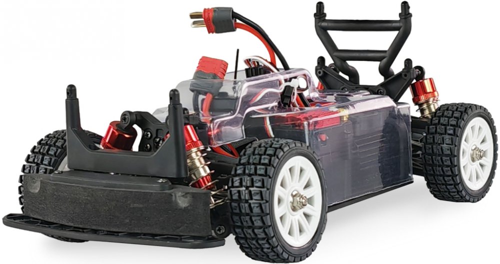 Kompletní sada připravená k jízdě obsahuje dálkové ovládání na frekvenci 2,4 GHz, lithium-iontovou baterii 7,4 V s kapacitou 2000 mAh a USB nabíječku. Po krátkém nabití je možné vyrazit na trať bez nutnosti dalších úprav nebo doplňků.