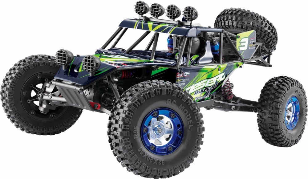 Desert Eagle-2, 4WD Dune Buggy v měřítku 1:12. Plně vybavená, RTR - připravena k provozu. S 1500mAh Li-ion baterií, kluznou spojkou a tuhou zadní nápravou. Komponenty vyrobené z vysoce kvalitních materiálů. Podvozek vyrobený z robustní plastokarbonové desky. Hliníkové tlumiče. Protiskluzové a otěruvzdorné pryžové pneumatiky. Citlivé a kvalitní 2,4 GHz rádiové dálkové ovládání. Bleskově lze přepnout z ovládání pro praváky na leváky, pomocí přesunutí volantu na druhou stranu. Výkonný elektromotor 380. Stálý pohon všech 4 kol pro nejlepší výkon. Ať už se jedná o zábavný park, tratě nebo vysoké skoky – Desert Eagle-2 je připraven na každou akci. Auto je také velmi dobře vyvážené, takže s ním lze jezdit v jakémkoli terénu. Výhodou je také plnohodnotné rezervní kolo!