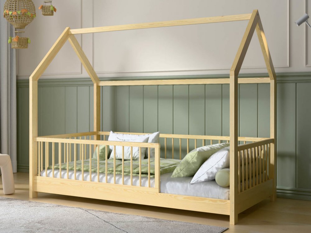 Promyšlený design – Okouzlující tvar domečku podněcuje dětskou fantazii – postel lze využít nejen jako místo na spaní, ale i jako herní koutek. Design umožňuje vstup zleva i zprava, takže se perfektně hodí do každé místnosti. Přírodní barva dřeva a minimalistický tvar doplňují moderní i klasické dětské interiéry.