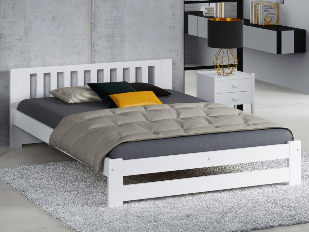 Manželská postel DMD11 je zhotovena z masivu borovice a kvalitní MDF desky, a tak je nábytek velmi odolný a stabilní. Klasický vzhled se hodí do každého interiéru, díky decentní konstrukci a nízkému čelu dřevěná postel působí jemným a moderním dojmem. Jednoduchý design je skvělý pro menší ložnice.