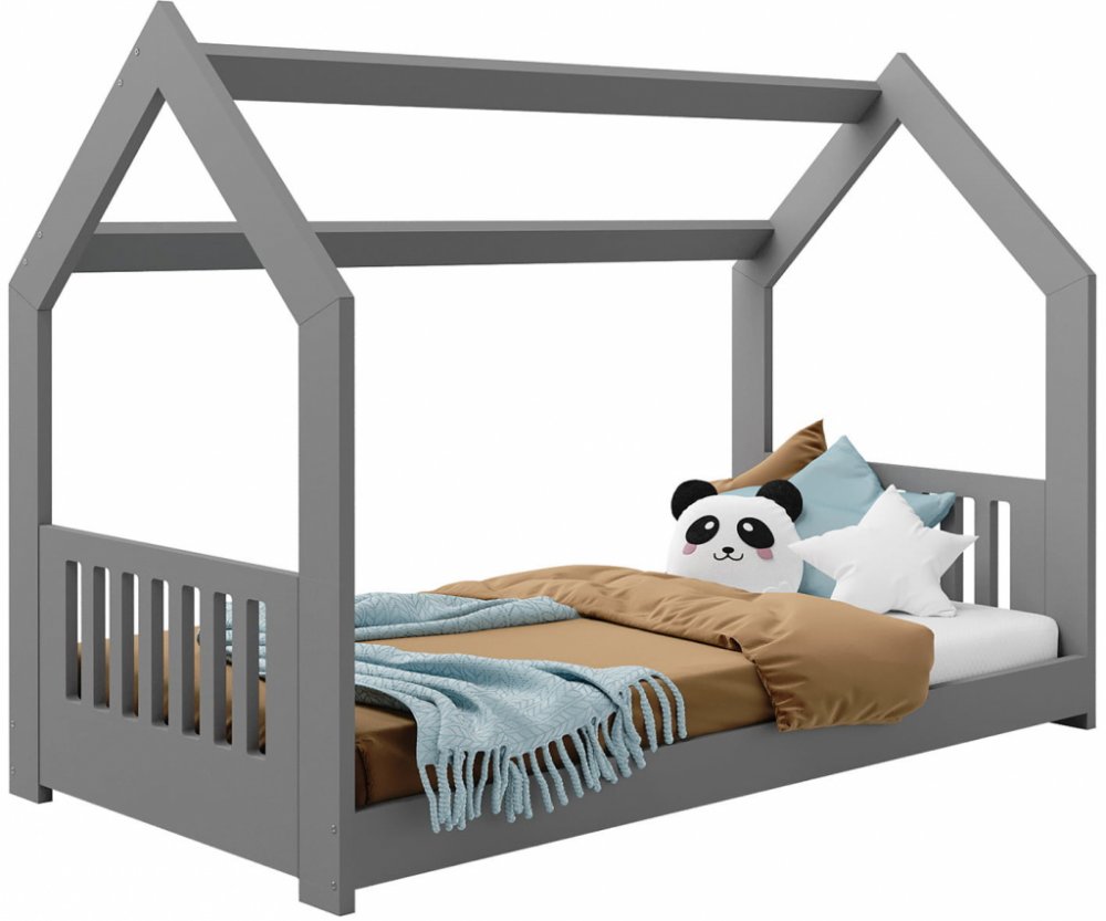 Šedá dětská postel DOMEČEK D2E 160 x 80 cm