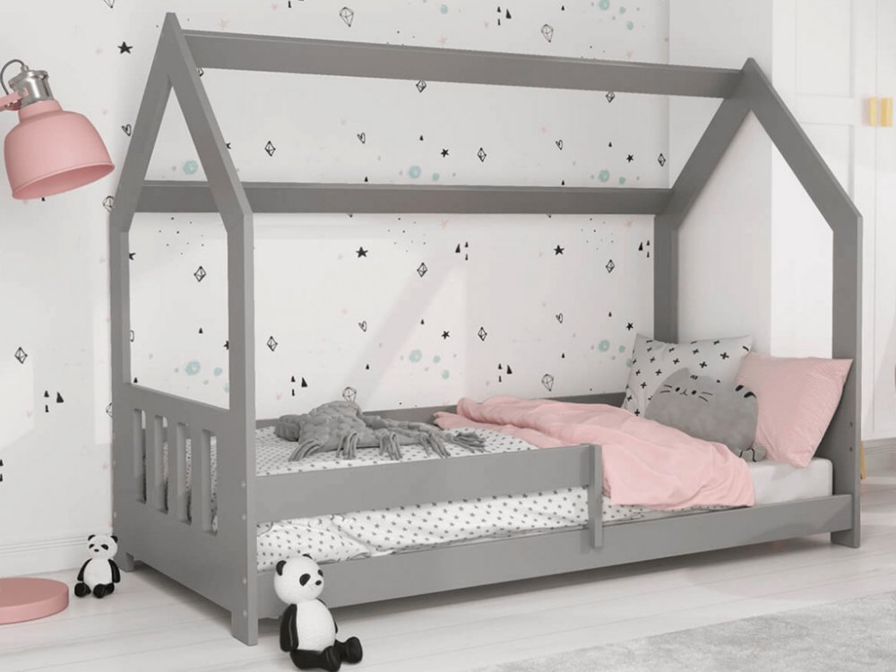 Šedá dětská postel DOMEČEK D5C 160 x 80 cm