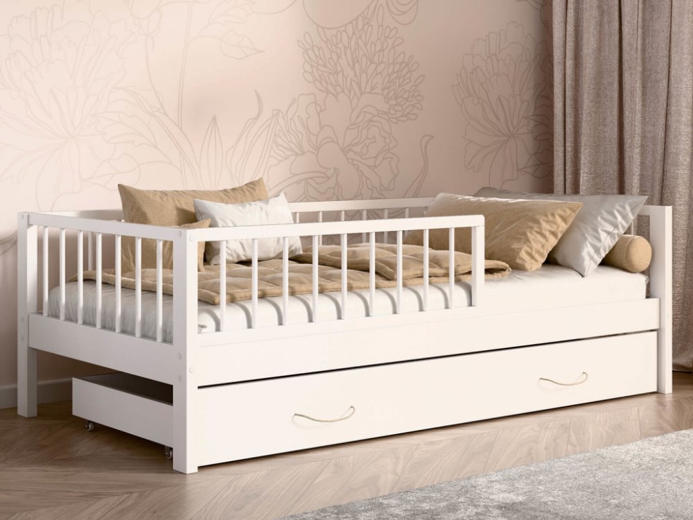 Dětská postel Filip 80x160 v bílé barvě s bezpečnostním zábradlím a zásuvkou - bezpečná a stylová volba do dětského pokoje