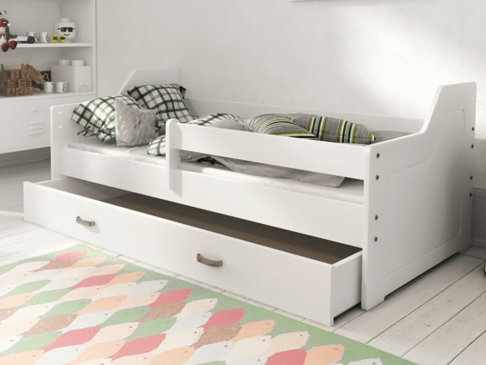 O PRODUKTUBílá postel Mája M4Masivní rám je vyroben z přírodního borovicového dřeva a zajišťuje stabilitu celé postele. Minimalistická forma se dokonale integruje s klasickým nebo moderním řešením vnitřních prostor. Výřezy v deskách ve tvaru kytiček a motýlka tvoří dekorativní prvek Nábytek dokonale spojuje eleganci a pohodu, zajišťující ložnici univerzální charakter. Jednoduchý design dodává místnosti dekorativní přízvuk, při zachování snadné údržby. Model Mája přináší do místnosti harmonii a ideální podmínky pro relaxaci. Díky bočním lištám je postýlka bezpečná i pro nejmenší děti. Sada obsahuje pružný rošt, vyrobený z 10 lamel z břízového dřeva spojených látkovou páskou. Jako jedni z mála používáme pro lakování nátěrové hmoty s atestem Národního ústavu hygieny. Naše laky mají povolení užívání na předměty, s nimiž přicházejí do kontaktu děti. (soulad s normou DIN EN 71, cz. 3). Postel je doručováná v balících. Zboží je částečně smontované. Pro složení stačí pouze spojit bočnice s hlavní části a připevnit rošt do rámu postele. Rozměry:Cena obsahuje:celková šířka: 86cmcelková délka: 164cmvnitřní šířka postýlky: 80cmvnitřní délka postýlky: 160cmvýška čela: 65cmTloušťka nosných části rámu: 2,5cmšuplík:celková šířka: 159cmcelková výška: 17cmcelková hloubka: 68cmpostel Mája M4 80x160 (bílá)pružný rošt Aratamontážní sadu + klíč návod k montáži pojištění zásilky záruku spokojenostiŠuplík pod postel 159 cmPro výše uvedené lůžko doporučujeme koupit jeden ze dvou matrací: HÉBÉ Hlavní vrstvu matrace tvoří polyuretanová pěna. Díky zvýšené tvrdosti a vysoké pružnosti jsme získali výjimečně odolnou matraci pro každodenní pohodlé používání. Matrace je oboustranná. Možnost využívání obou stran matrace prodlužuje její životnost.Pro zajištění co nejvyšší kvality a spokojenosti zákazníků se na výrobu matrace používá antialergenní materiály. Námi použíté suroviny k výrobě omezují možnosti vzniku prachových roztočů, co umožňuje použítí matrace pro lidi s alergiemi. Rozměry:Zóny tvrdosti: Cena obsahuje:Délka: 160cmŠířka: 80cmVýška: 8cm Matrace Hébé 80x160Pojištěnou zásilku AURORAHlavní vrstvu matrace tvoří polyuretanová pěna. Díky zvýšené tvrdosti a vysoké pružnosti jsme získali výjimečně odolnou matraci pro každodenní pohodlé používání. Matrace je oboustranná. Možnost využívání obou stran matrace prodlužuje její životnost.Konstrukce byla z jedné strany zpevněná kokosovým vláknem, které zvýšilo její stabilitu. Na horní vrstvy matrace byla použita polyuretanová pěna, která poskytuje odpovídající podporu po celé délce páteře.Pro zajištění co nejvyšší kvality a spokojenosti zákazníků se na výrobu matrace používá antialergenní materiály. Námi použíté suroviny k výrobě omezují možnosti vzniku prachových roztočů, co umožňuje použítí matrace pro lidi s alergiemi. Rozměry:Zóny tvrdosti: Cena obsahuje:Délka: 160cmŠířka: 80cmVýška: 8cm Matrace Aurora 80x160Pojištěnou zásilku