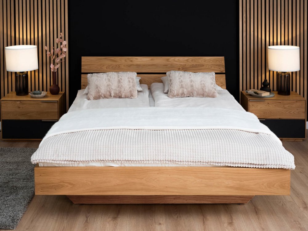 Tato jedinečná postel Rossano z masivního dubového dřeva potěší svou přirozeností a nadčasovou elegancí. Rám postele stojí na stabilních masivních nohách. Obrácené nohy opticky odlehčují masivní konstrukci a vytvářejí dojem postele zavěšené ve vzduchu. Opěradlo je připevněno k rámu postele pomocí kovových držáků. Dřevo je ušlechtilý materiál, který krásně stárne. Kromě toho je bezkonkurenční, pokud jde o strukturu a barvu, které mu dodávají jedinečný charakter.
