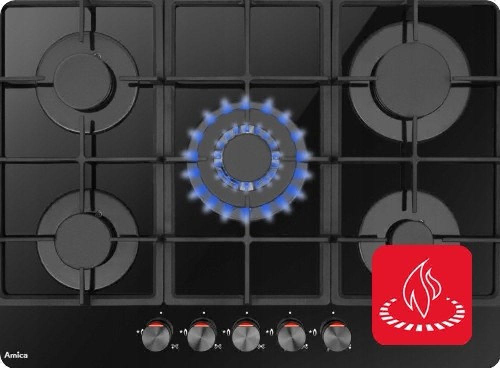 Když hořák omylem zhasne, může to být nebezpečné. Ne u plynových varných desek Amica, u kterých je použit speciální uzavírací ventil přívodu plynu. Bezpečnost nade vše!