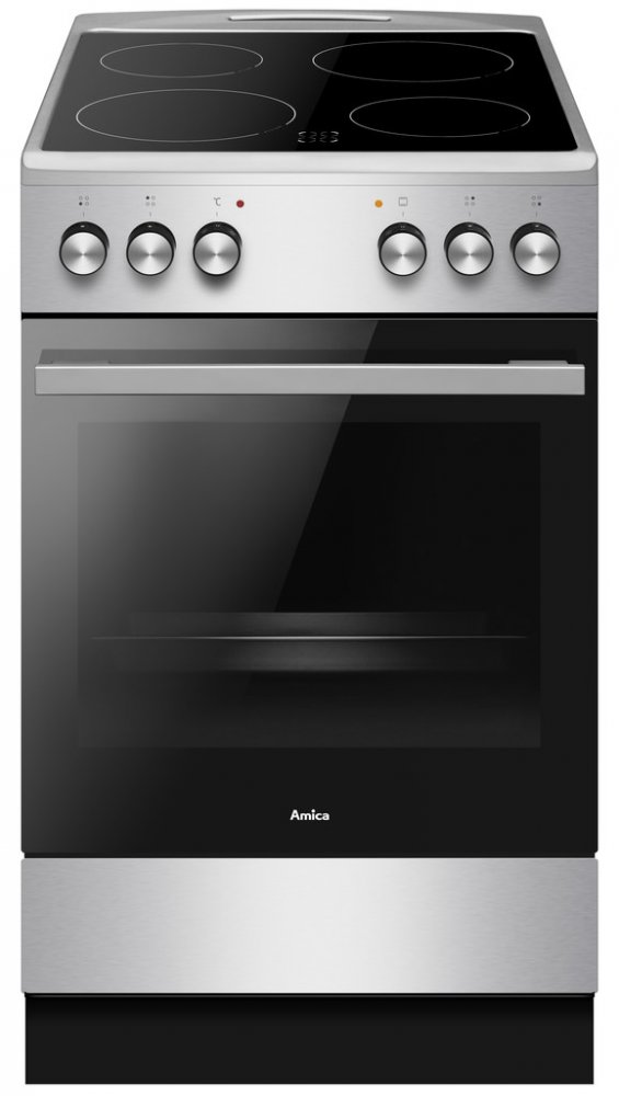 Amica SF 5111 MX – Sporák Amica se sklokeramickou varnou deskou se 4 varnými zónami. Energetická třída A, 11 funkcí trouby a vnitřní objem 65 litrů.. Sklokeramický sporák s šířkou 50 cm Amica SF 5111 MX – kategorie „Sklokeramické sporáky s šířkou 50 cm“