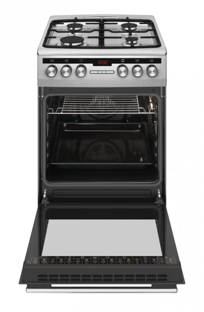 Kombinovaný sporák, Energetická třída A, Objem trouby: 62 l, Plynová varná deska, 4 varných zón, Celkový výkon trouby: 3600 W, nerez barva, Gril, Výška: 85 cm, Šířka: 50 cm, Hloubka: 60 cm