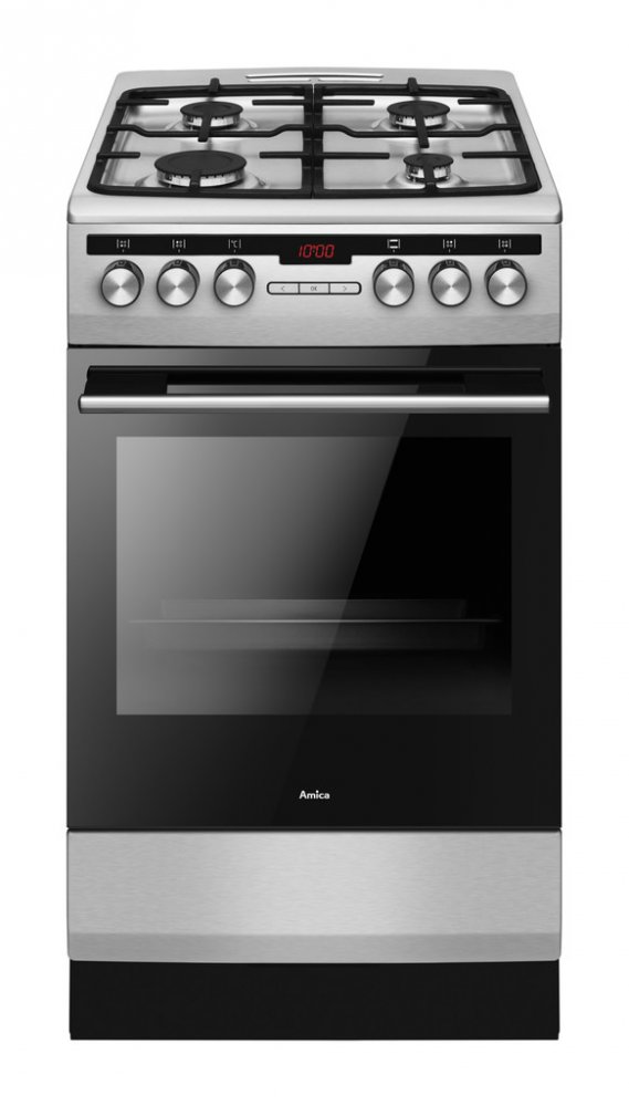 Sporák K50 Amica SPA 111 EBXVelký 2,8 kW hořákKaždodenní příprava velkých jídel již nemusí být problém. S tímto velkým hořákem o výkonu 2,8 kW zvládnete úkony v kuchyni mnohem snadněji. Velký hořák poskytuje velkou varnou plochu. Nyní můžete využít i velké hrnce, díky kterým připravíte najednou i větší množství pokrmů. To šetří čas a přináší pokrmy, které skvěle voní a chutnají.Litinové roštyLitinové rošty jsou odolné a stabilní, současně je velmi snadné je udržovat v čistotě. Litinové rošty zaručují pohodlí a bezpečnost provozu.Technická data:Barva NerezVýška 85 cmŠířka 50 cmHloubka 60 cmTyp varné desky PlynováEnergetická třída A Vnitřní objem trouby 62 lCelkový příkon 3,6 kWHorní topné těleso 900 WSpodní topné těleso 1100 WZadní kruhové topné těleso 2100 WElektrický gril 1500 WPočet varných zón/hořáků 4 ks.Připojení k elektrické síti Zapojení na 230 VFunkčnost a zařízení:FunkčnostTyp trouby: MultifunkčníPočet funkcí: 11 VýbavaSuper rychlý ohřev Snadno čistitelný smalt Recepty na dveřích Výsuvný odkládací prostor Elektrické zapalování v knoflíku Bezpečnostní pojistky hořáků u desky Počet plechů: 1RoštHalogenové osvětleníTyp předních dvířek: Trojité sklo dveří troubyVarné zónyMalý hořák 5,3 cm (1,0 kW)Střední hořák 7,3 cm (1,8 kW): 2 ks.Velký hořák 9,8 cm (2,8 kW) Varná deskaLitinové rošty