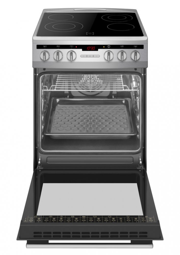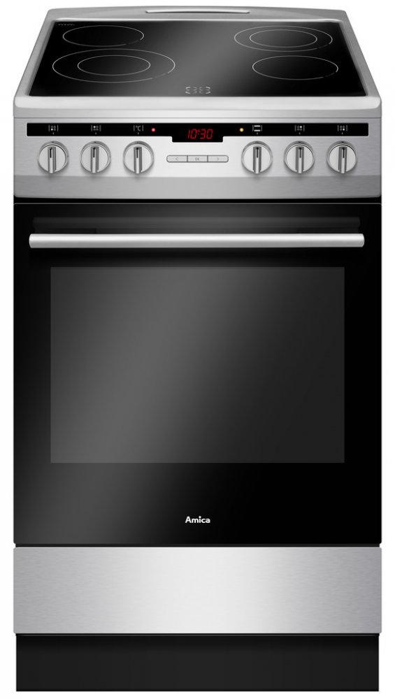 Elektrický sporák Amica SSA 110 X má nerezové provedení se sklokeramickou varnou deskou. Je to spotřebič, který se svým vzhledem hodí do každé kuchyně. Sporák je zařazen do energetické třídy A. K dispozici máte praktickou sklokeramickou desku vybavenou 4 samostatnými HiLight varnými zónami různého průměru a výkonu s indikátory zbytkového tepla. Hilight varné zóny šetří čas i energii, protože se zahřívá na nejvyšší teplotu během pár vteřin. Ukazatele zbytkového tepla zhasnou, když varné zóny dosáhnou teplotu bezpečnou na dotyk dlaně. V případě, že desku nepoužíváte, můžete ji využít i jako pracovní či odkládací plochu.