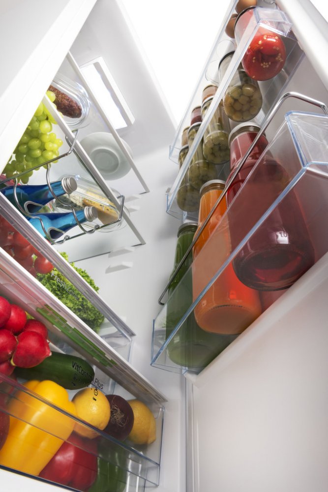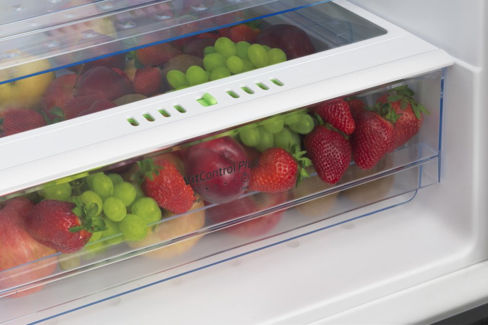 - Zásuvka VitaControl Plus – možnost nastavení úrovně vlhkosti se speciální FreshPad podložkou chránící potraviny, aby se nedotýkaly dna zásuvky