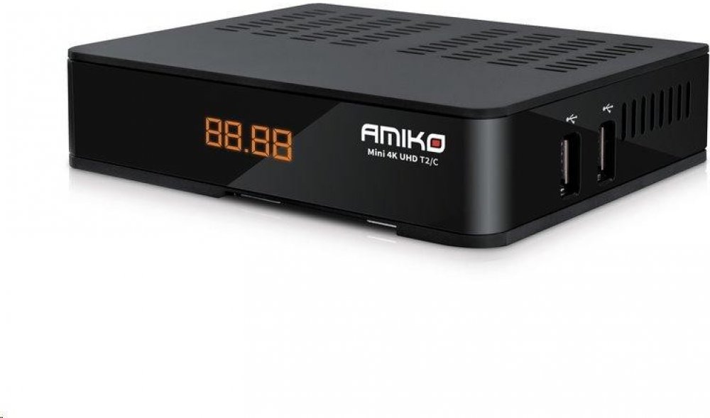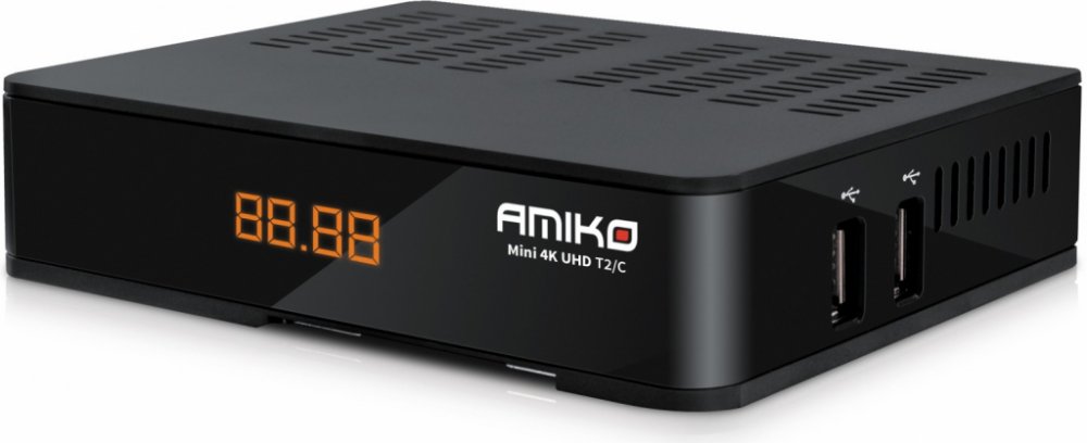Digitální přijímač osvědčené značky AMIKO, se kterým získáte přístup k programům nejen z klasické antény (DVB-T2), ale i kabelovky (DVB-C).